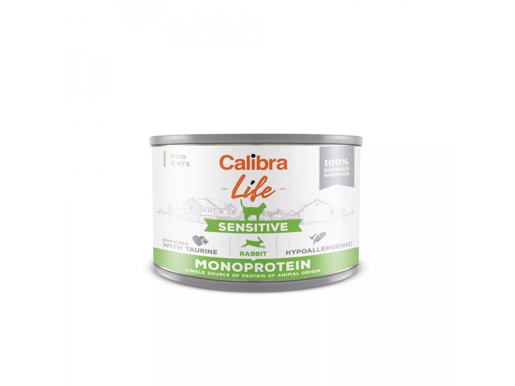 Calibra Cat Life Sensitive Rabbit – receptura konzervy s králičím, která je určena pro dospělé kočky, vhodná i pro citlivé zažívání.