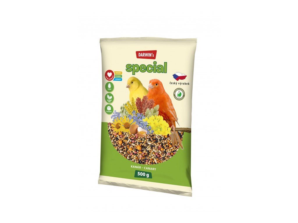 Proso žluté, řepka, lesknice kanárská, proso červené, len, konopí semeno, niger, oves nahý, vejce, kvasnice, Yucca schidigera.