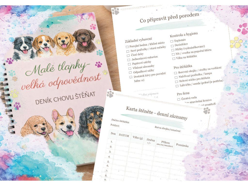 Kolikrát si při vrhu zapisujeme váhy štěňat, poznámky nebo rezervace majitelů na různé papírky – tenhle deník pomůže mít všechno přehledně na jednom místě.