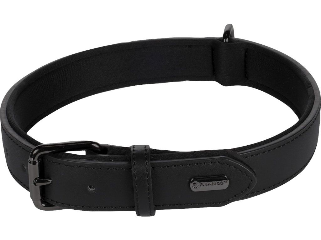 Flamingo Binti Kožený obojek s neoprenem Černá