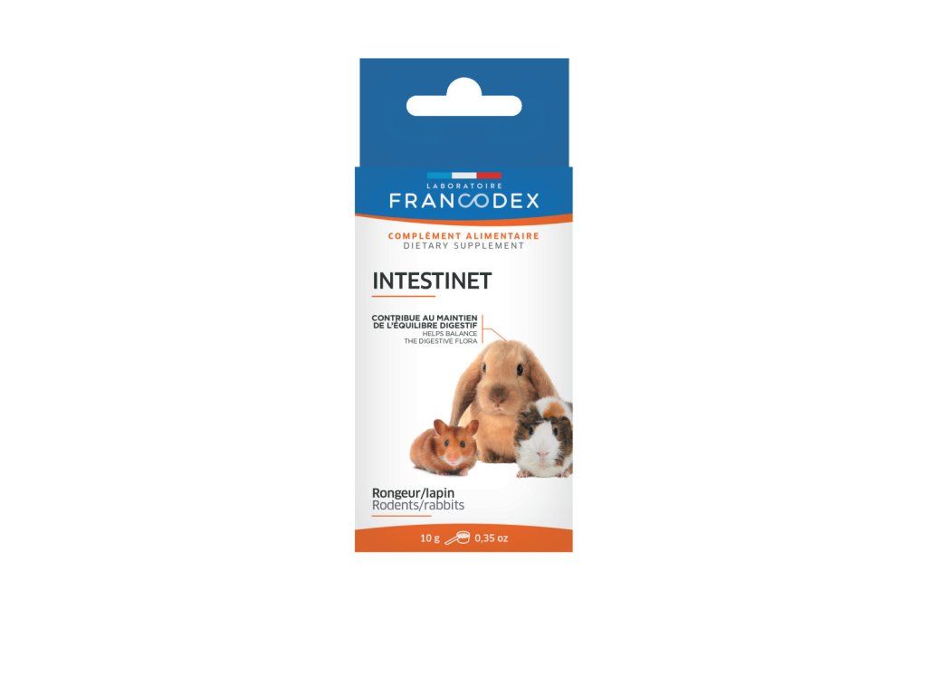 FRANCODEX INTESTINET obsahuje mannan-oligosacharidy a ß-glukany, které pomáhají vyrovnávat trávicí flóru u hlodavců a zakrslých králíků.