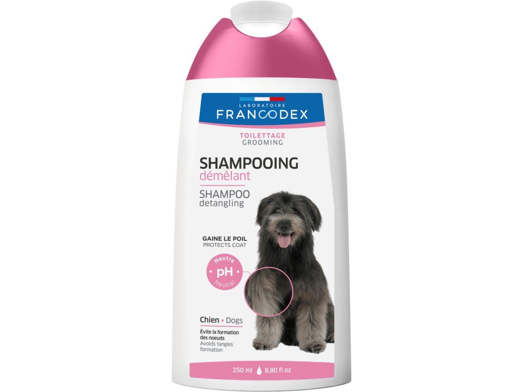 Šampon pro snadné rozčesávání od FRANCODEX Santé Animale brání zacuchání chlupů vašeho domácího mazlíčka a přidává objem jeho srsti. pH produktu je neutrální, a proto nedráždí ani citlivou pokožku a udržuje její přirozenou hladinu hydratace. Lze používat dle potřeby.