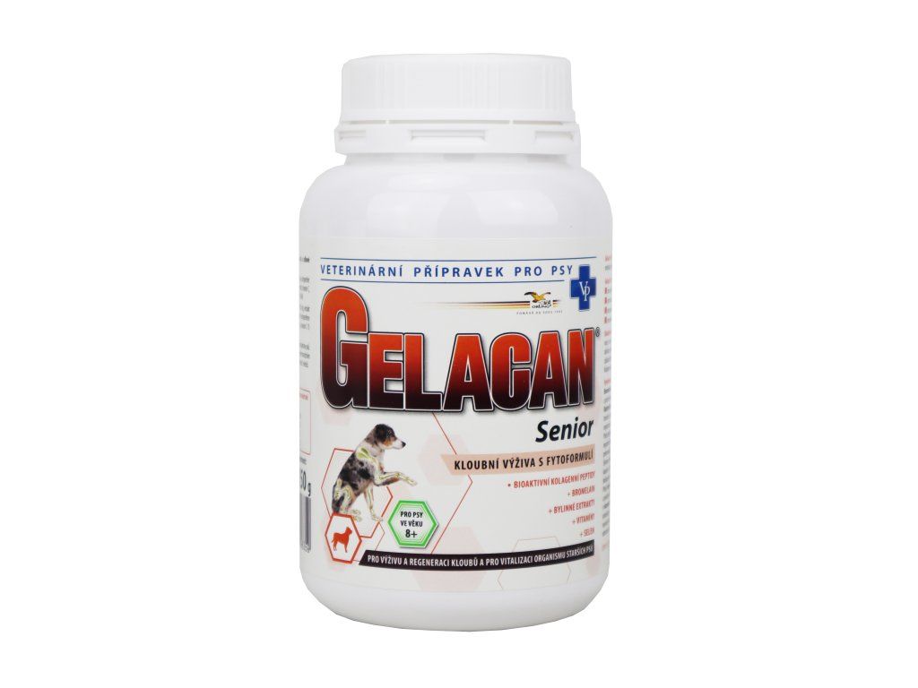 Gelacan® Senior je veterinární přípravek - nutraceutikum s bioaktivními kolagenními peptidy a bylinnými extrakty pro výživu a regeneraci pohybového aparátu a pro celkové posílení a vitalizaci organismu psů.