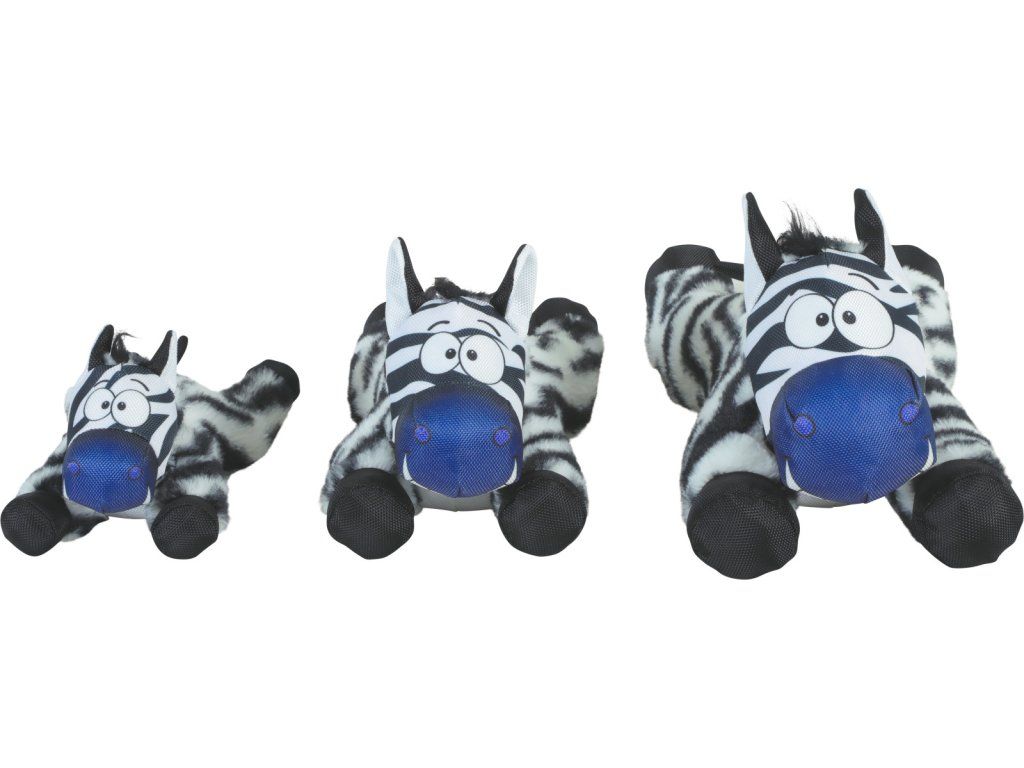Plyšová hračka se zvukem ve tvaru zebry určená pro psy.