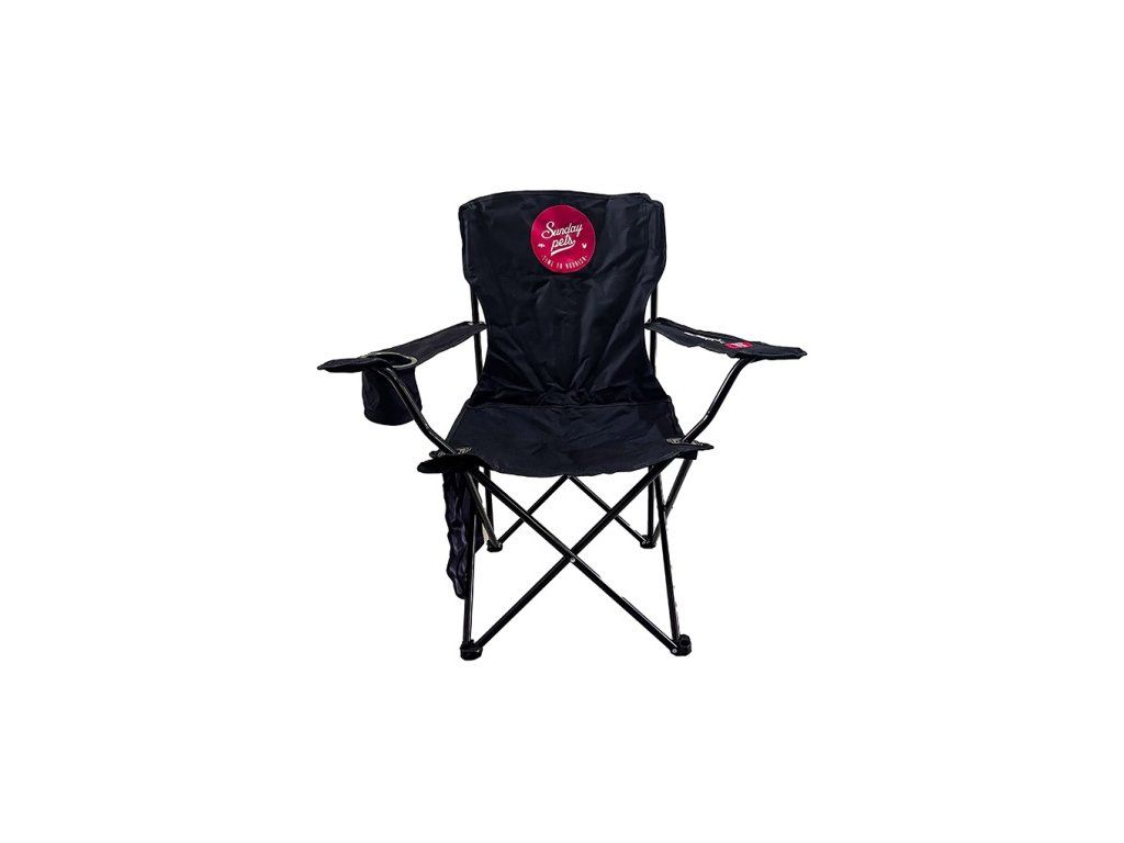 Pohodlné kempingové křeslo s nosností do 150 kg s integrovaným držákem na nápoj a boční kapsou.