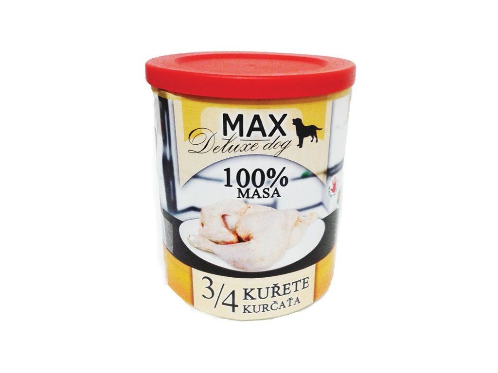 Konzervy MAX deluxe jsou vyrobené ze 100% čistého masa téměř z celého kuřete, které je nasekané na kusy ve vysoké kvalitě.
