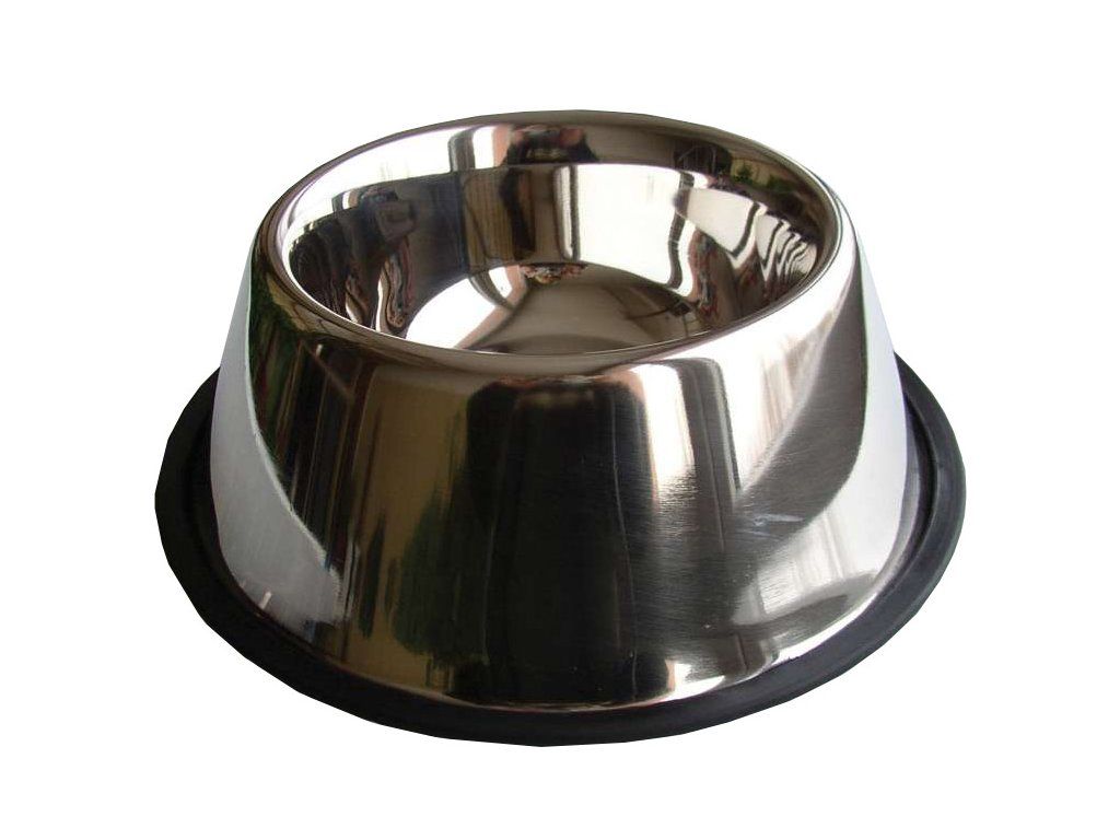 Nerezová miska se stabilizační protiskluzovou gumou na vodu nebo krmivo.