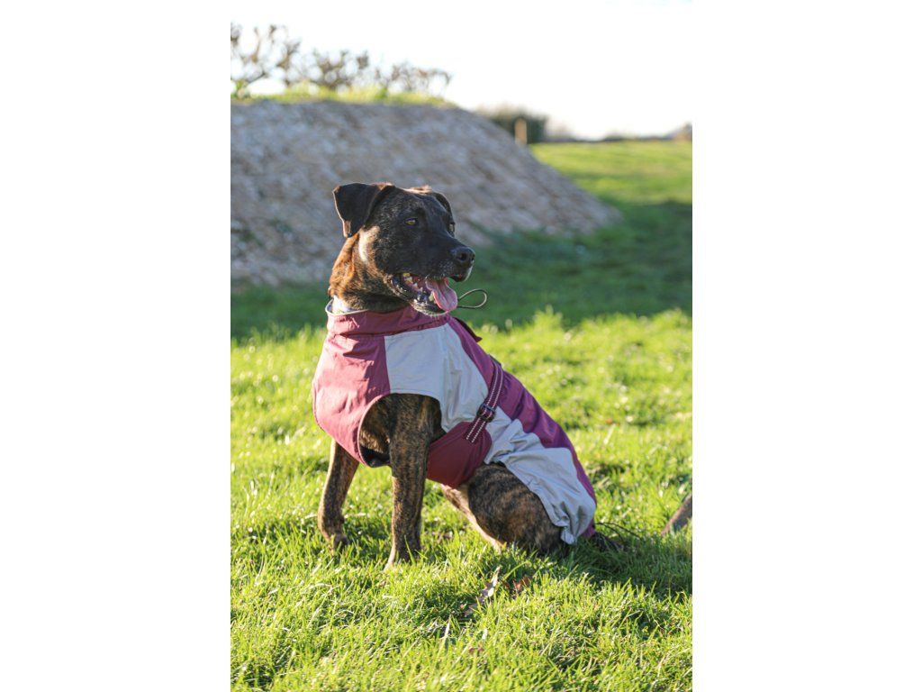 Nastavitelné popruhy a úvazy umístěné na dvou koncích větrovky umožňují nastavit velikost kabátku s ohledem na morfologii psa pro optimální pohodlí.