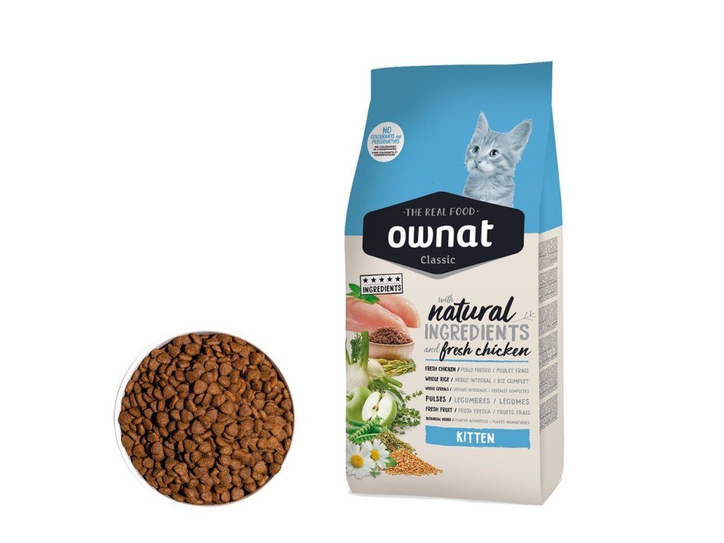 OWNAT CLASSIC CAT Kitten je speciálně navržené krmivo pro koťata, které poskytuje všechny nezbytné živiny pro správný růst a vývoj. Krmivo obsahuje vysoký podíl bílkovin z kvalitního kuřecího masa, které podporují růst svalů a rozvoj kostry. Díky pečlivě vybraným ingrediencím je strava snadno stravitelná a podporuje zdravé trávení a imunitní systém rostoucích koťat.
