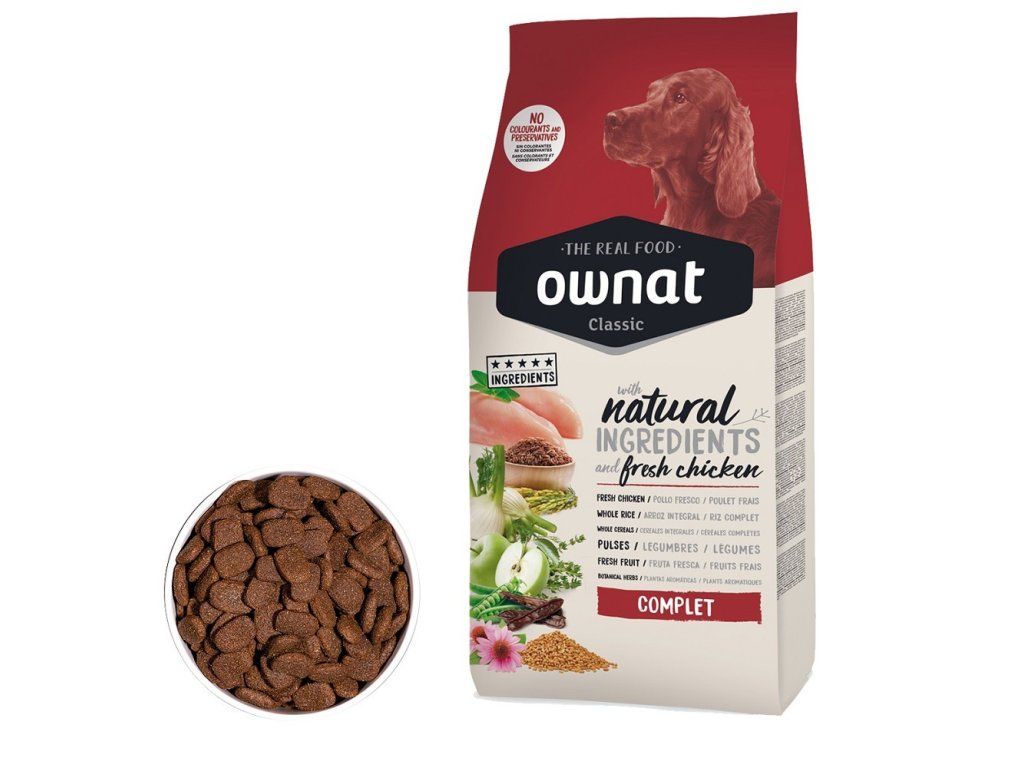 - Vysoká kvalita: OWNAT CLASSIC DOG Complet je vyrobeno z pečlivě vybraných surovin, které zajišťují vysokou stravitelnost a skvělou chuť, kterou váš pes ocení.