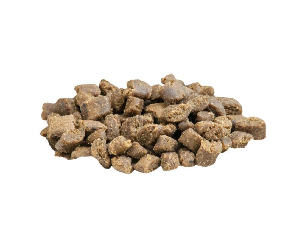 Krmivo s nízkým obsahem obilovin. Bez obsahu lepku, bez GMO, bez masokostní moučky, bez umělých konzervantů, dochucovadel a barviv, bez extrudace.