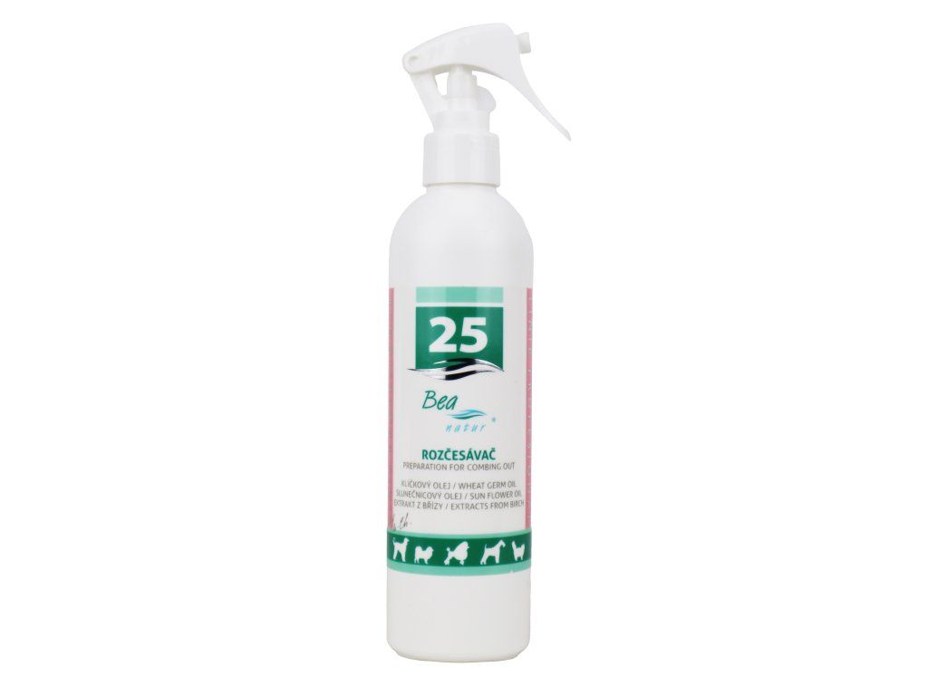 Návod k použití: Dostatečné množství BEA natur rozčesávače nasprejujte do zacuchaných míst v srsti. Zacuchaná místa promněte mezi prsty, aby se rozčesávač dostatečně zapracoval do srsti. Nechejte několik minut působit a opatrně rozčesávejte pomocí kartáče. V případě velmi silných zacuchanin postup opakujte. Aplikace většího množství rozčesávače může způsobit mastný vzhled srsti, proto doporučujeme výrobek použít před koupáním. Po rozčesání použijte vhodný šampon (např. č.1-Jemný šampon) a odpovídající kondicionér. Výrobek není určen pro běžné každodenní pročesávání srsti. Nestříkejte zvířeti do očí a na sliznice.