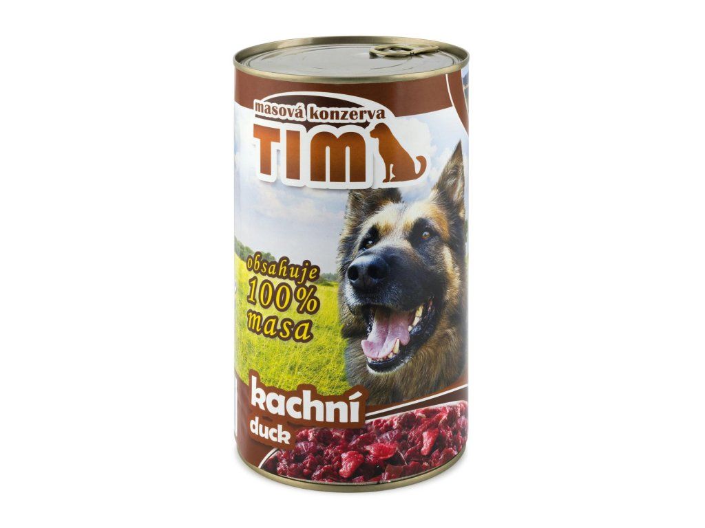 TIM celomletá 100% masová konzerva složená z ořezů kachního masa a drobů. Výrobek může obsahovat kosti.