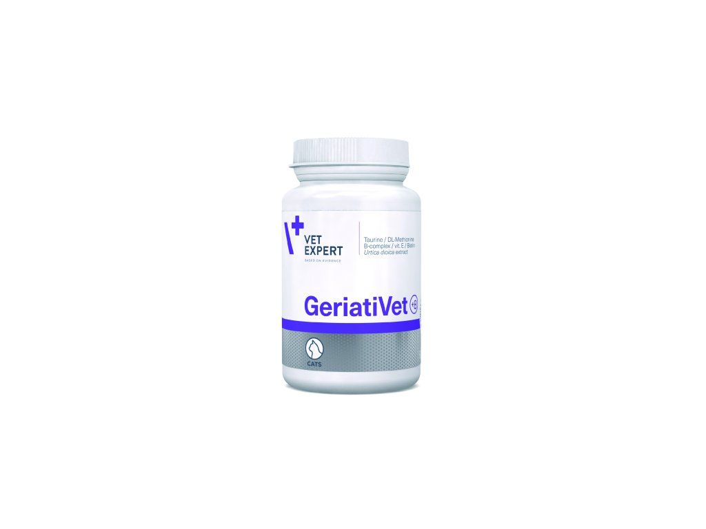 Přípravek podporující správné fungování a ochranu seniorského organismu kočky. GeriatiVet Cat podporuje činnost srdečního svalu a chrání dolní močové cesty. Složky přípravku byly vybrány tak, aby kočku chránily před nejčastějšími problémy souvisejícími s věkem.